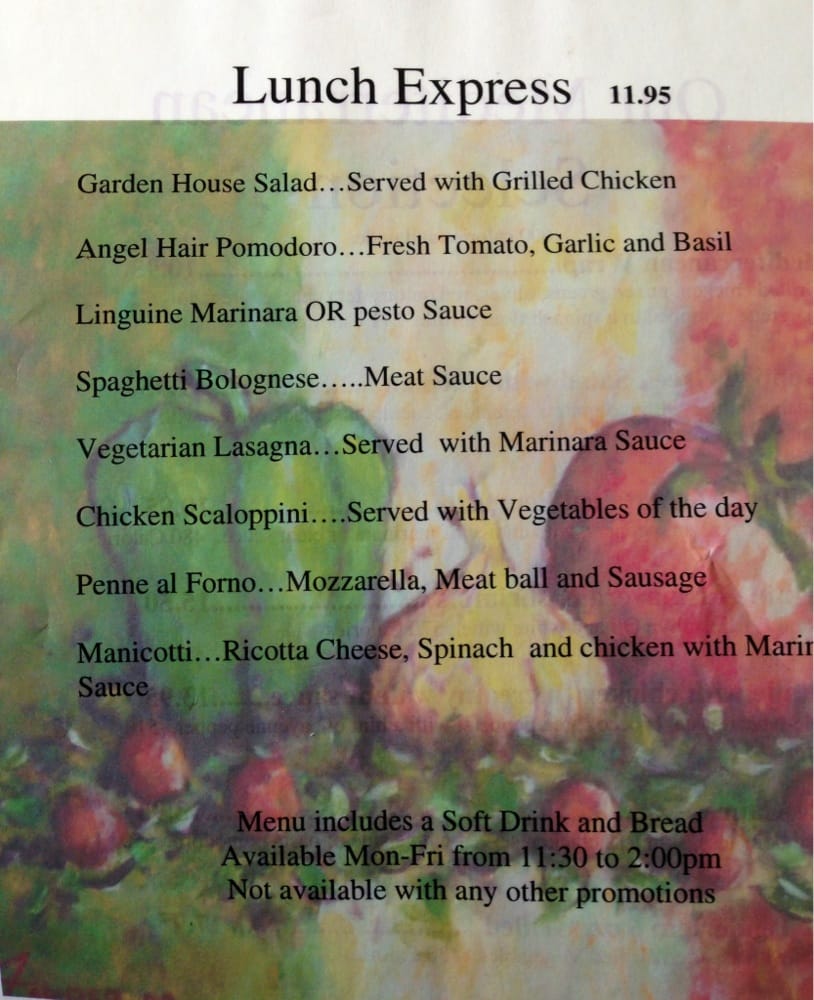Recommended for people. House salad, linguine pasta with choice of sauce, stuffed sole with salmon, chicken piccata, home bread.